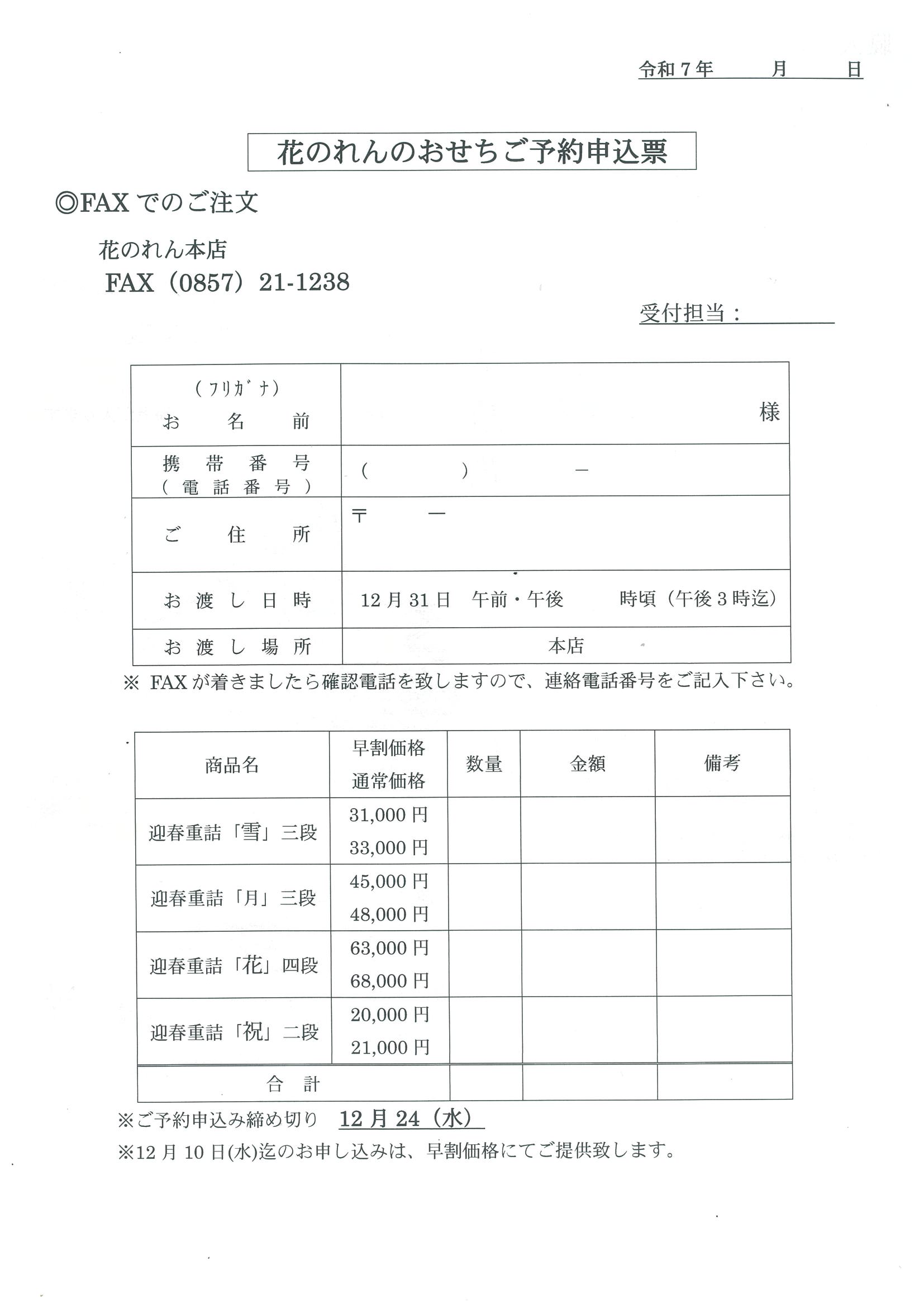 ✿おせち 申込用紙✿
